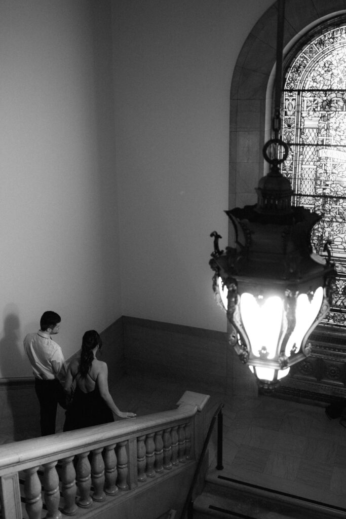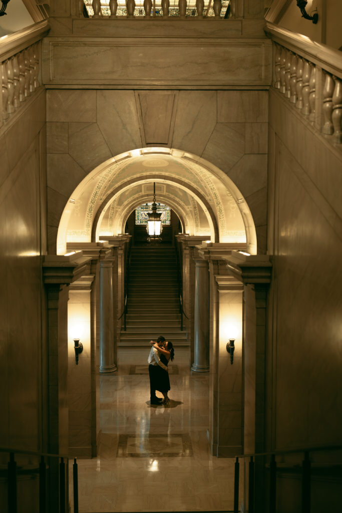 I truly believe that your engagement session should feel like a date, and if you want it to, strike a memory. For example, Ashley and Nathan love going out and seeing the city together, so we decided to go to the library for a part of their engagement session. It truly felt magical and we got some amazing beautiful engagement photographs!